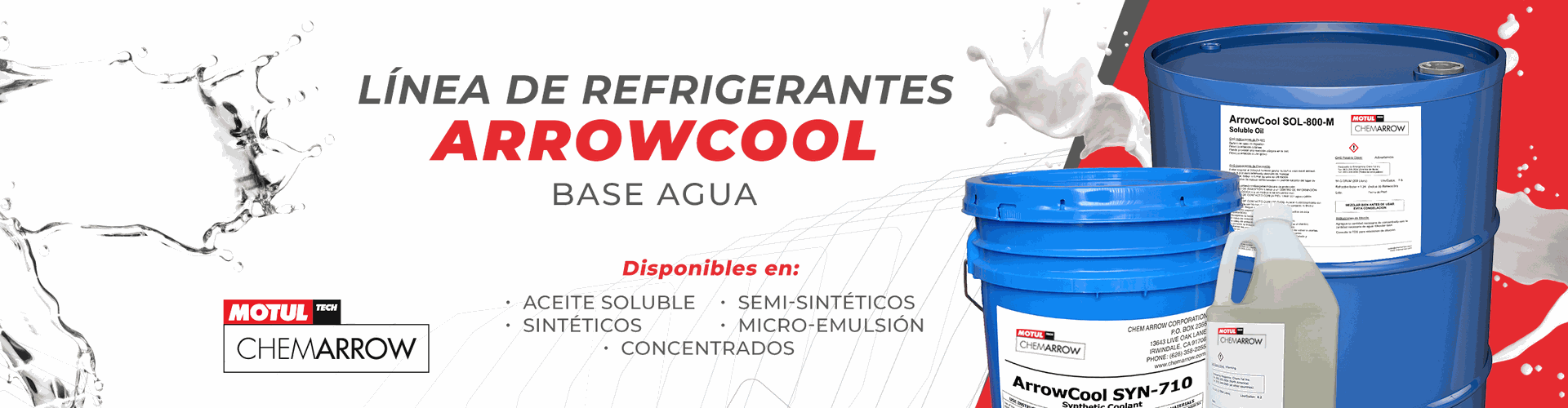 Conozca la amplia línea en refrigerantes solubles en agua de Chem Arrow. Disponibles en aceite soluble, micro-emulsión, semi-sintéticos, sintéticos y concentrados. Estos productos cubren toda la serie de aplicaciones de corte y rectificado en la industria moderna.